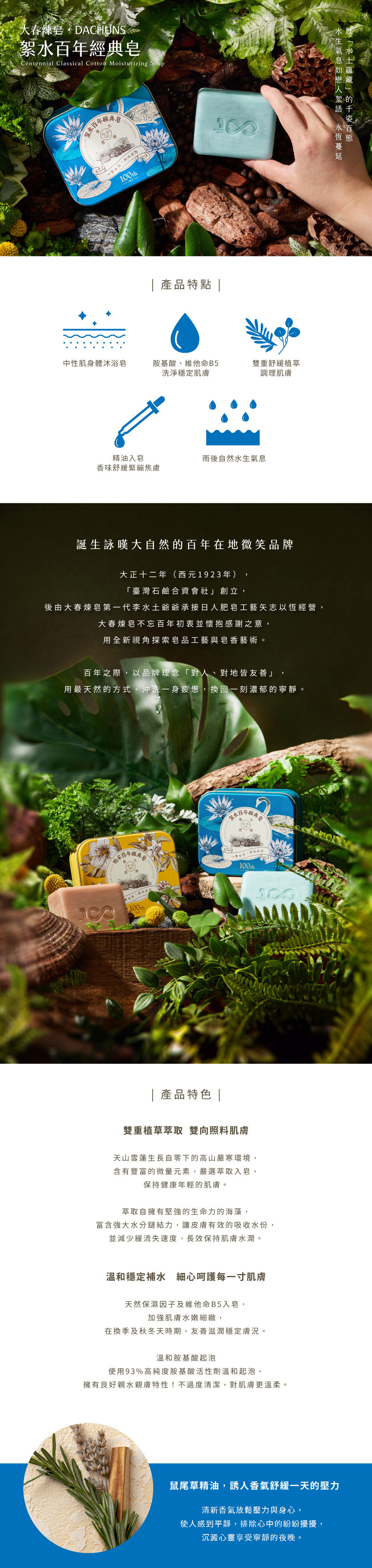商品名稱:大春煉皂・DACHUN 絮水百年經典皂 Centennial Classical Cotton Moisturizing Soap