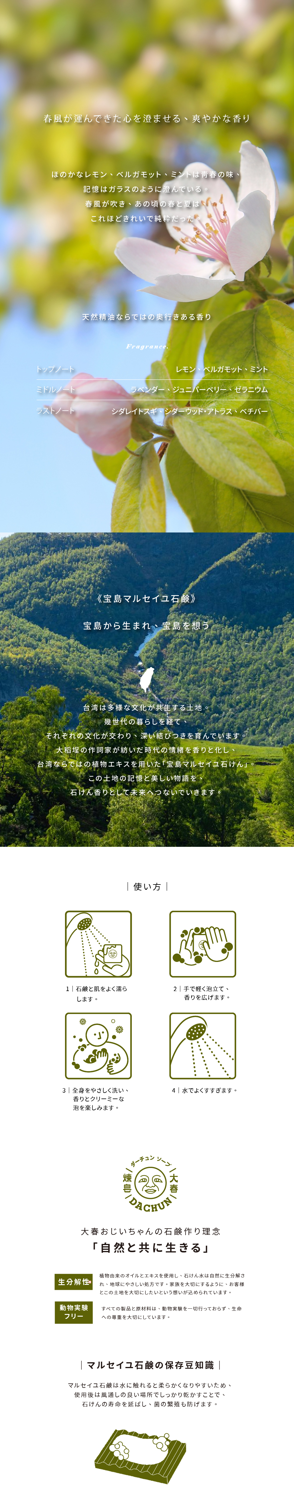 • 9種のボタニカル精油を石鹸に配合し、心を穏やかにリラックス。