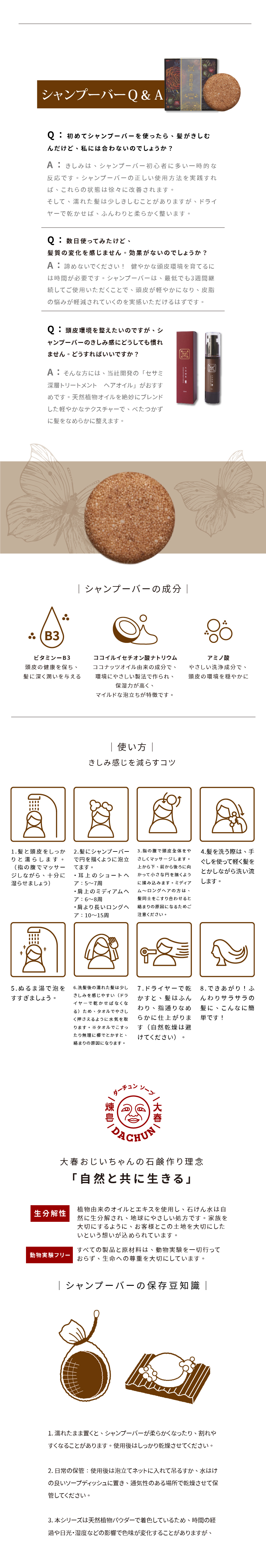 • 全ての髪質に適した弱酸性シャンプーバーで、頭皮に負担をかけません