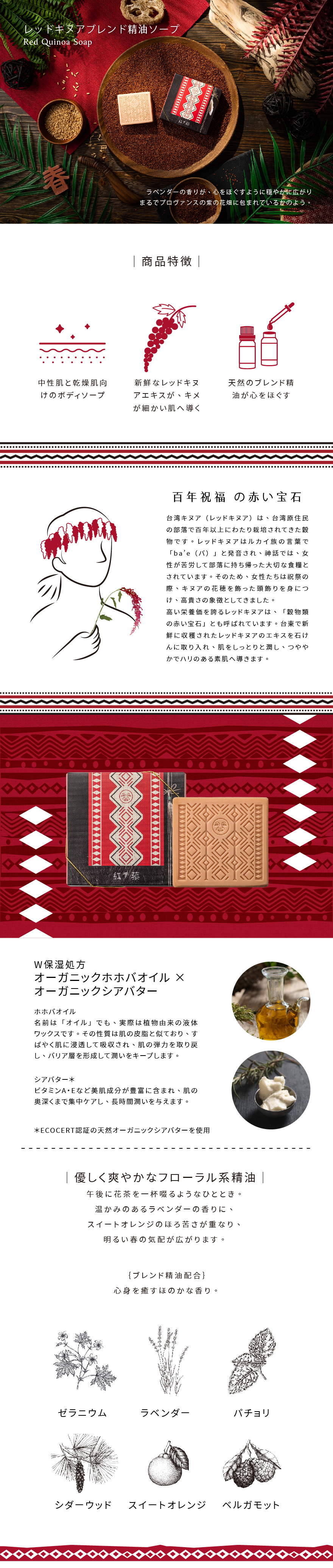 • 台湾台東県で採りたての新鮮なレッドキヌアから抽出したエキスを配合、滑らかでキメが細かい肌に整え