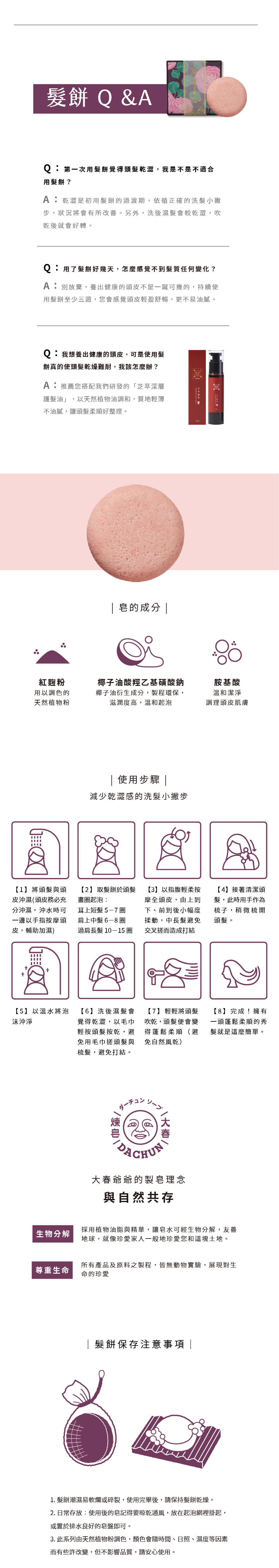 • 適合全髮質的弱酸性髮餅,給予頭皮零負擔