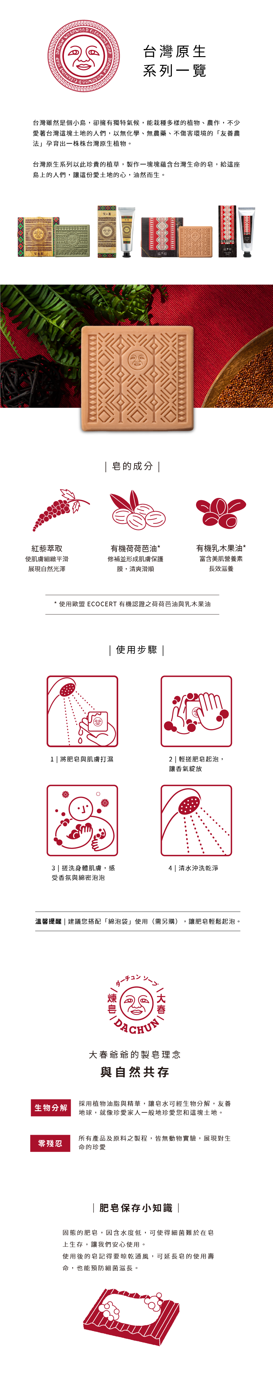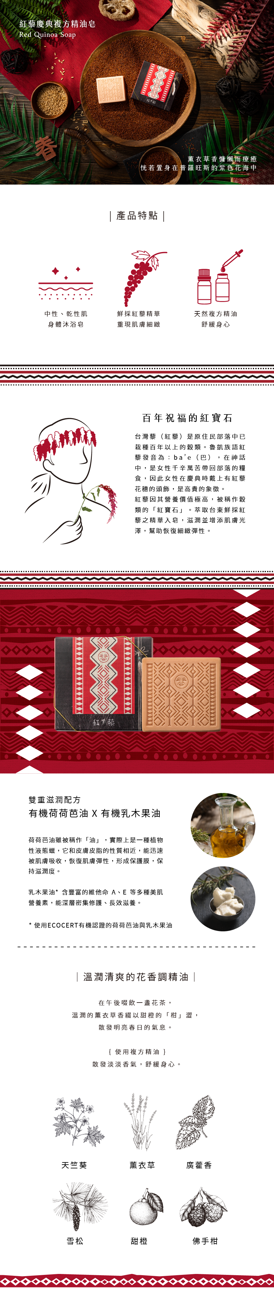 商品名稱:台灣原生・紅藜慶典 複方精油皂 Taiwan Native -Red Quinoa Soap