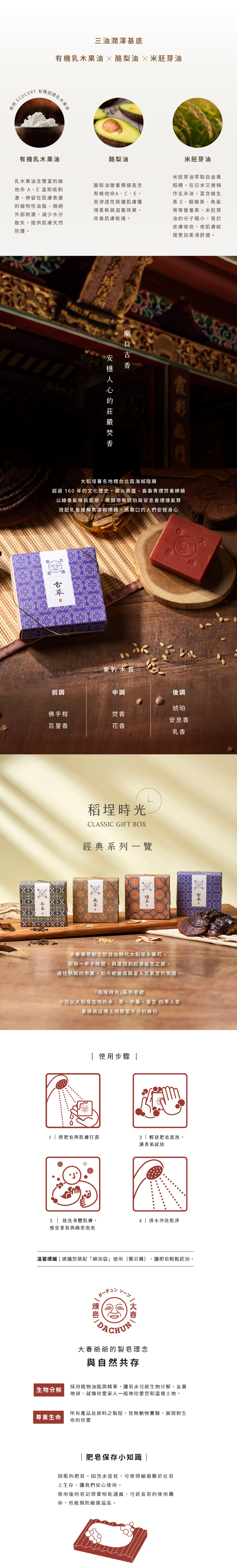 成分:棕櫚油、棕櫚核仁油、米胚芽油、有機乳木果油、酪梨油、靈芝萃取