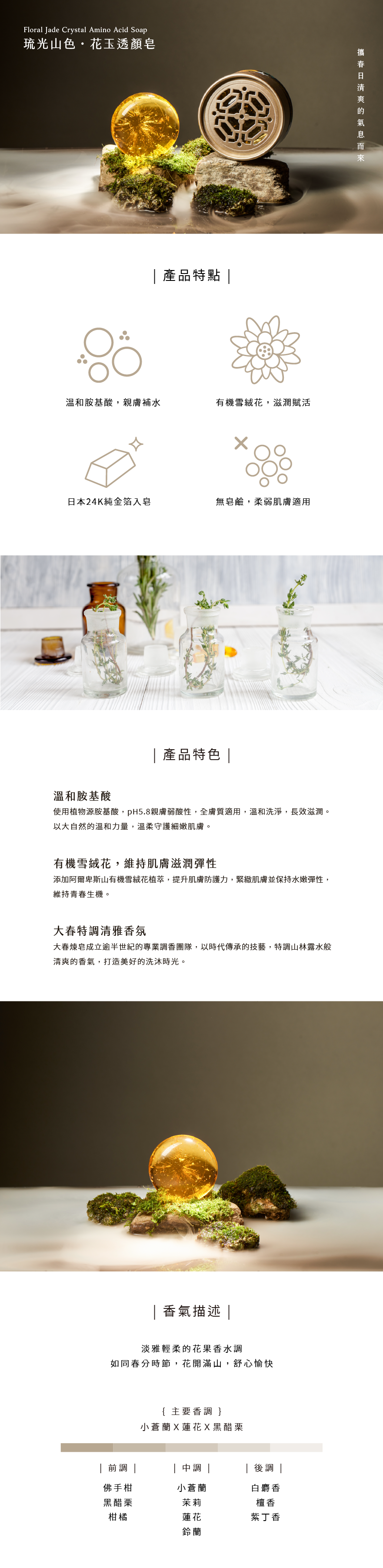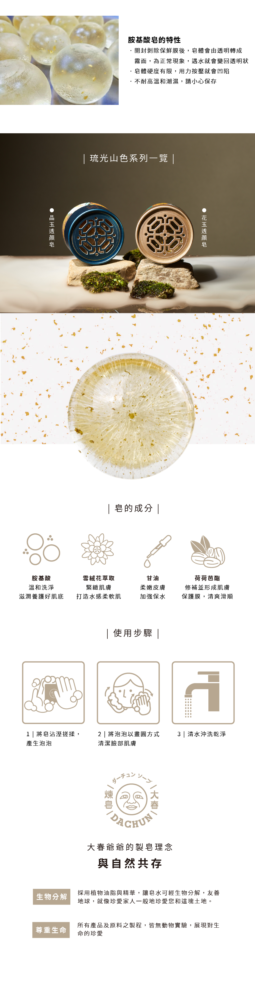 商品名稱:琉光山色・花玉透顏皂 Floral Jade Crystal AminoAcid Soap