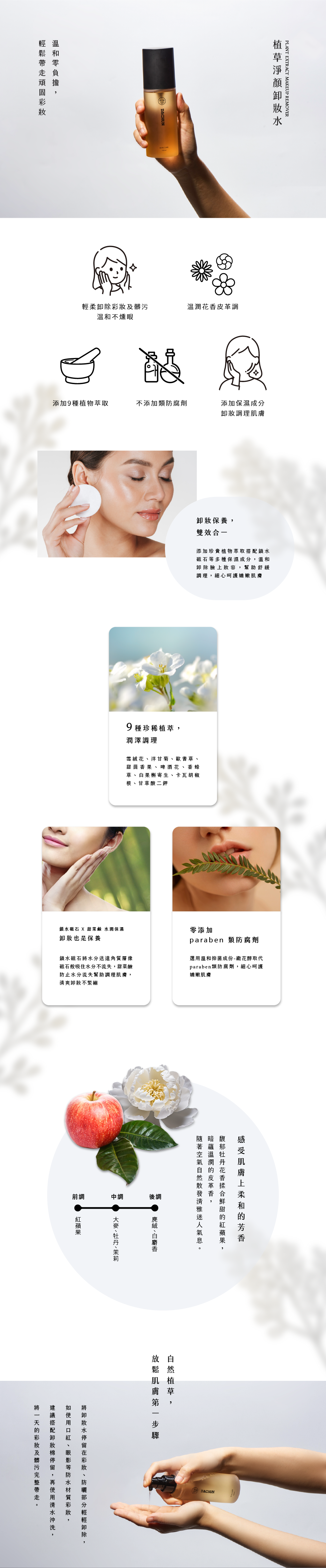 * 添加9種植物萃取,卸妝同時舒緩肌膚