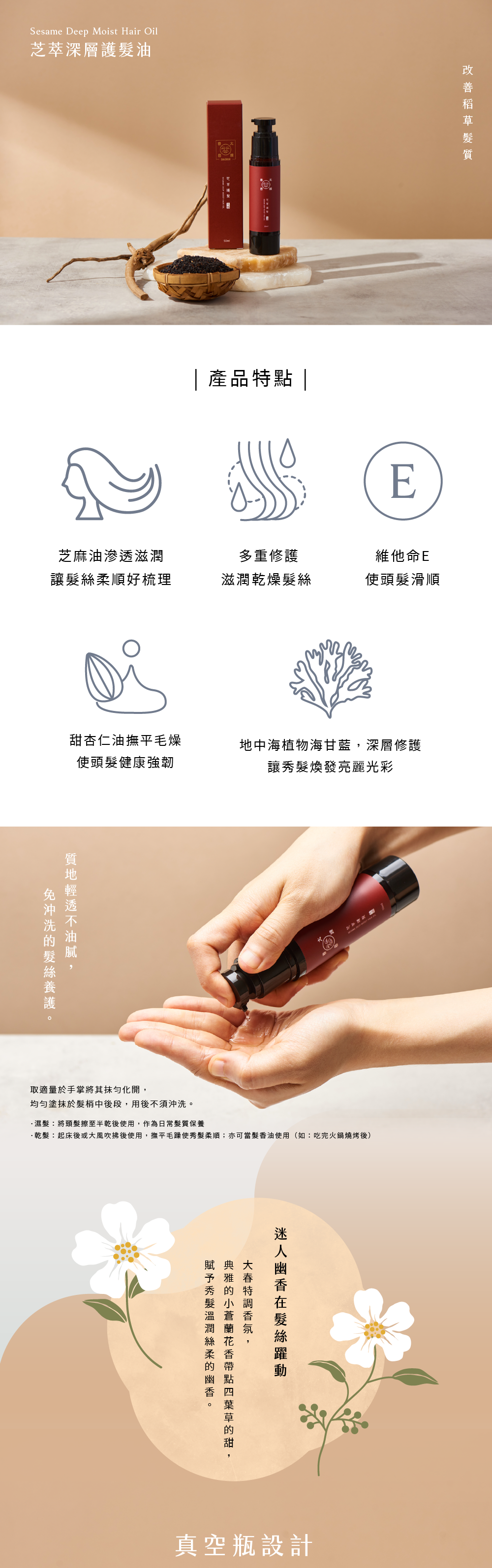 商品名稱:芝萃深層護髮油 Sesame Deep Moist Hair Oil