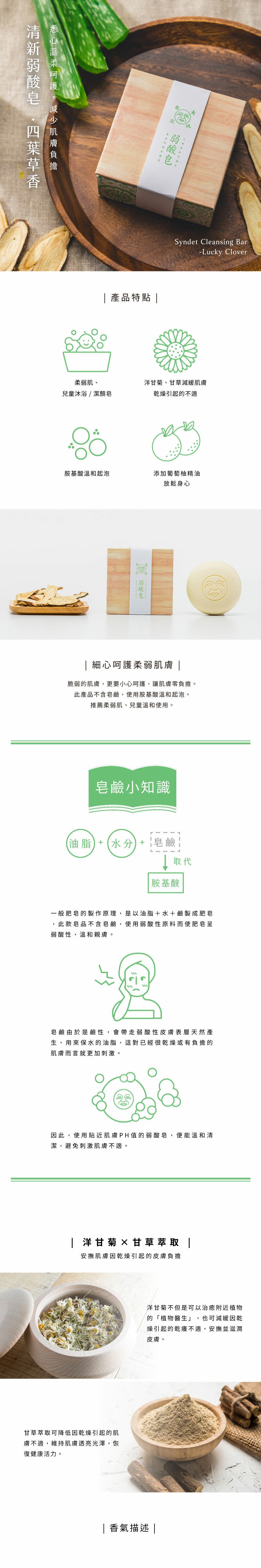 商品名稱:四葉草弱酸皂 Syndet Cleansing Bar - LuckyClover