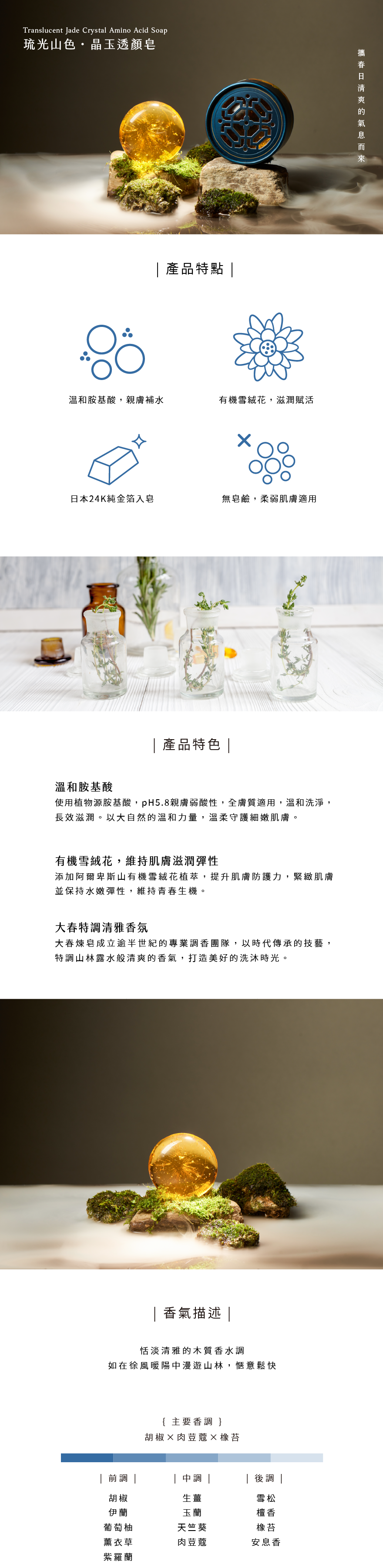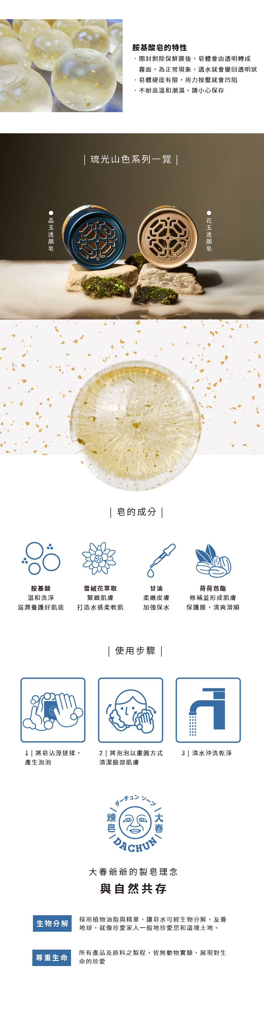 商品名稱:琉光山色・晶玉透顏皂 Translucent Jade CrystalAmino Acid Soap