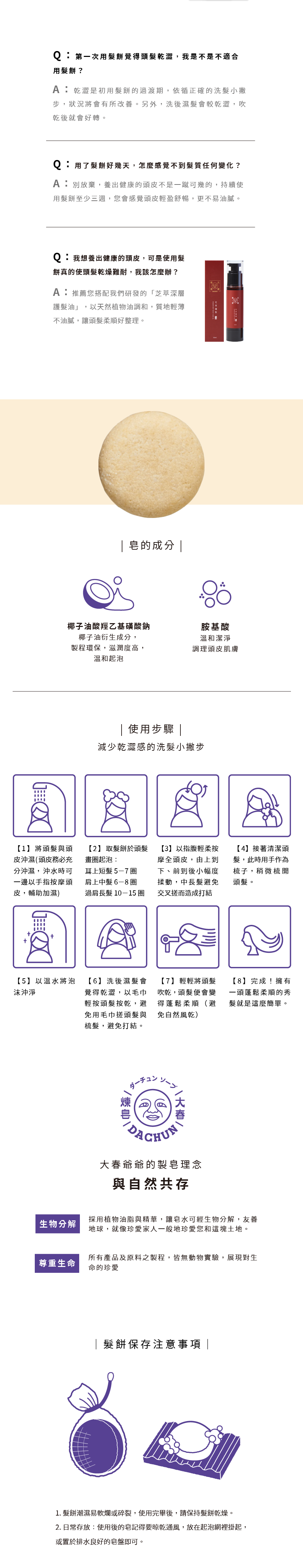 • 適合全髮質的弱酸性髮餅,給予頭皮零負擔